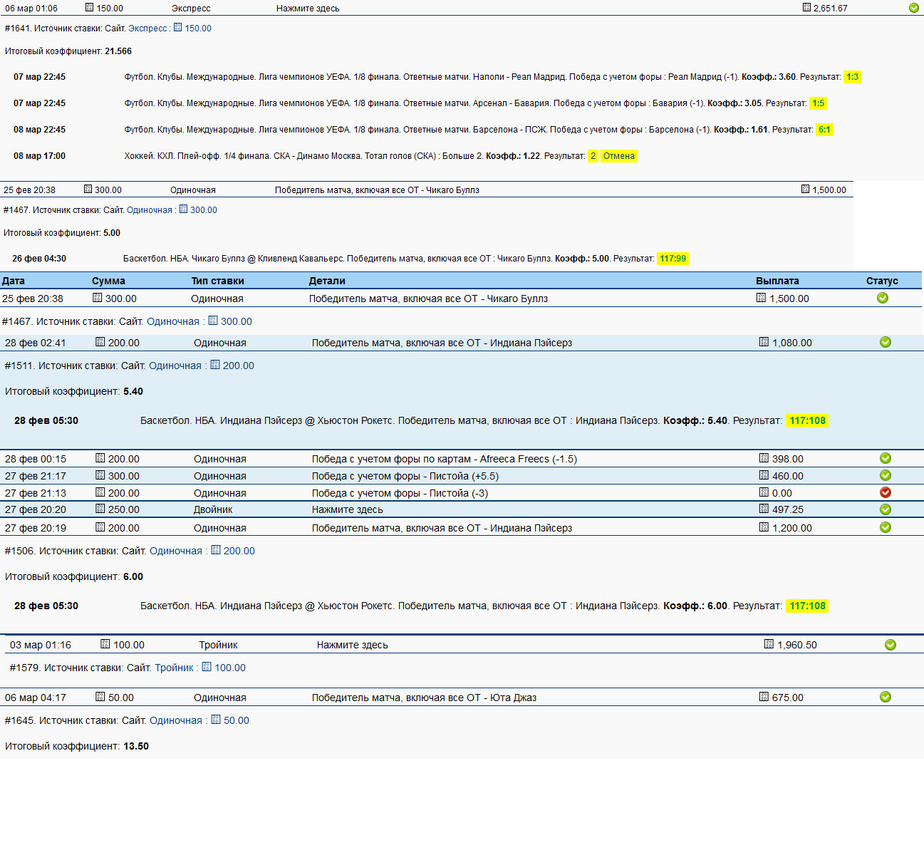 Ставки делал, в основном, не больше 150-200 рублей, что позволяло при более менее прухе увеличивать банк на 5к в неделю. Да, последний месяц играл преимущественно в будние дни, ибо по странному стечению обстоятельств все сливы приходились на выходные, аккурат с субботы по середину воскресения. Видимо это связано с легким расслабоном прогнозистов.