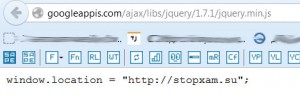 Тут надо заметить, что файлы находятся на сайте схожего написания, т.ч я сперва даже не уловил разницу в одну букву. При том, что тема у меня на сайте крутилась порядка 2 лет, до момента редиректа. Судя по хуизам- домен разраба шабла или библиотеки, перехватили несколько дней назад, после чего подменили библиотеку на редирект и тихонечко собирают траф. И самое главное что таким незамысловатым образом не боятся даже откручивать Адсенс.