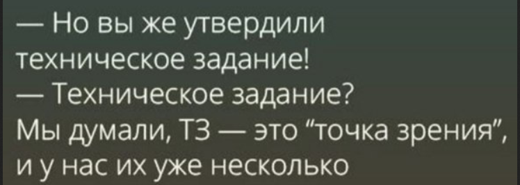 В принципе уже привык, что клиентский аппетит приходит во время еды, т.ч порою, начав консультировать по одной теме, внезапно приплетается еще что нить. Ну да ладно. Тут с айтишной сетки по услугам пришел запрос на, казалось бы, небольшую работу, который вылился прям в изюмительный диалог, закончившийся ожидаемо ничем, т.к клиент полагал, что все хотелки – это плевые допы, которые ничего не стоят.