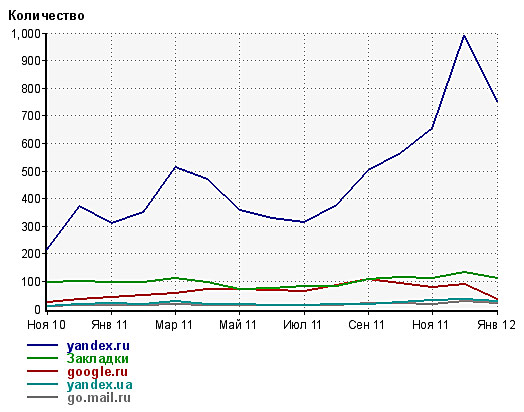 На мауле подняли тему падения трафика с Google, причем с классическим диагнозом- траф иссяк в октябре, то есть ровненько после прохождения очередной версии панды. В связи с чем появилось желание расписать некие аспекты, на которые следует обратить внимание, если на вашем сайте куда то пропал трафик с Google, или его количество сильно разнится с трафиком от Яндекс. Для затравки- приведу два простых примера собственных сайтов- одному все по барабану (кстати я так и не понял в чем дело, так как я на нем никаких работ по ограничению индекса не производил), ну а второй развлекательный портал который построен чуть более чем полностью на копипасте.