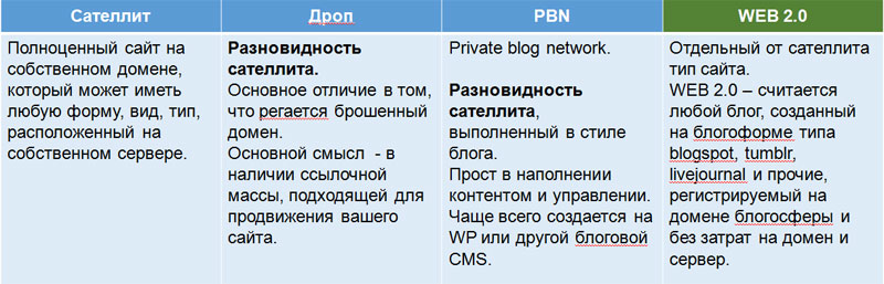 И все бы ничего, если б специалист, буквально с третьего слайда, не зарядил, что сателлиты – это сайты, а PBN – блоги. А дропы это вообще отдельный вид сателлита, которым WEB2.0 не является, ибо он вне системы.
