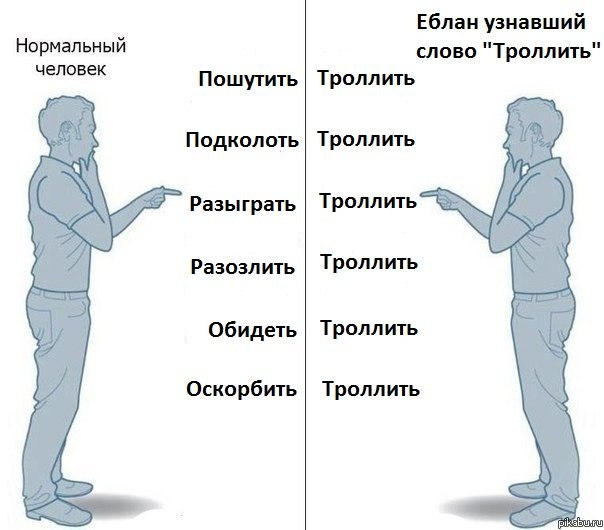 Но когда тебя обвиняют в троллинге, за то что ты человеку приводишь какие то географические или политические неопровержимые факты- не может вызвать ничего кроме кривой усмешки и понимая того, что в интернетах быть самовлюбленным мудаком проще всего: если тебе что то недоступно или ты чего то не знаешь, обвиняй сразу в троллинге.